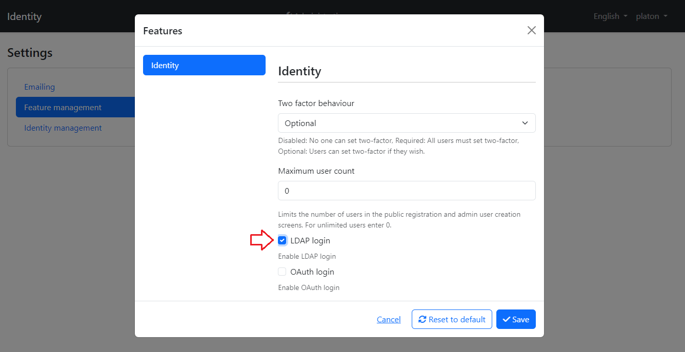 | EnableLdapLogin | Whether LDAP authentication is enabled | true |