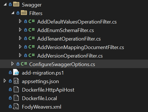 DefaultValuesOperationfilter for handling "default values" at swagger ui, in order to achieve this create new folder namedFiltersunderSwaggerfolder and then addAddDefaultValuesOperationFilter.cs.